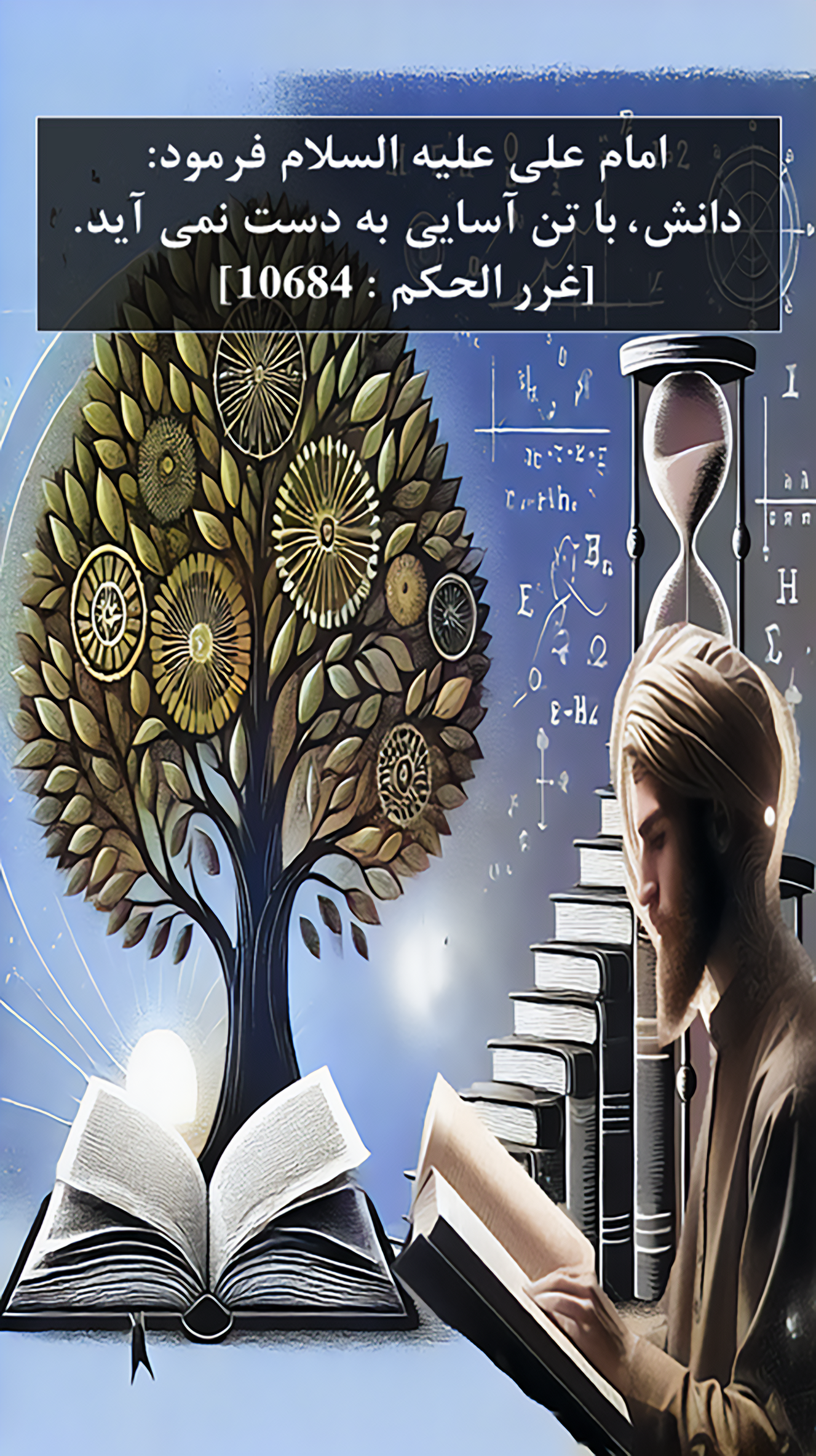 Qur'anic verses and hadiths of Ahl al-Bayt (peace be upon them) and sayings in Arabic, Persian and English.