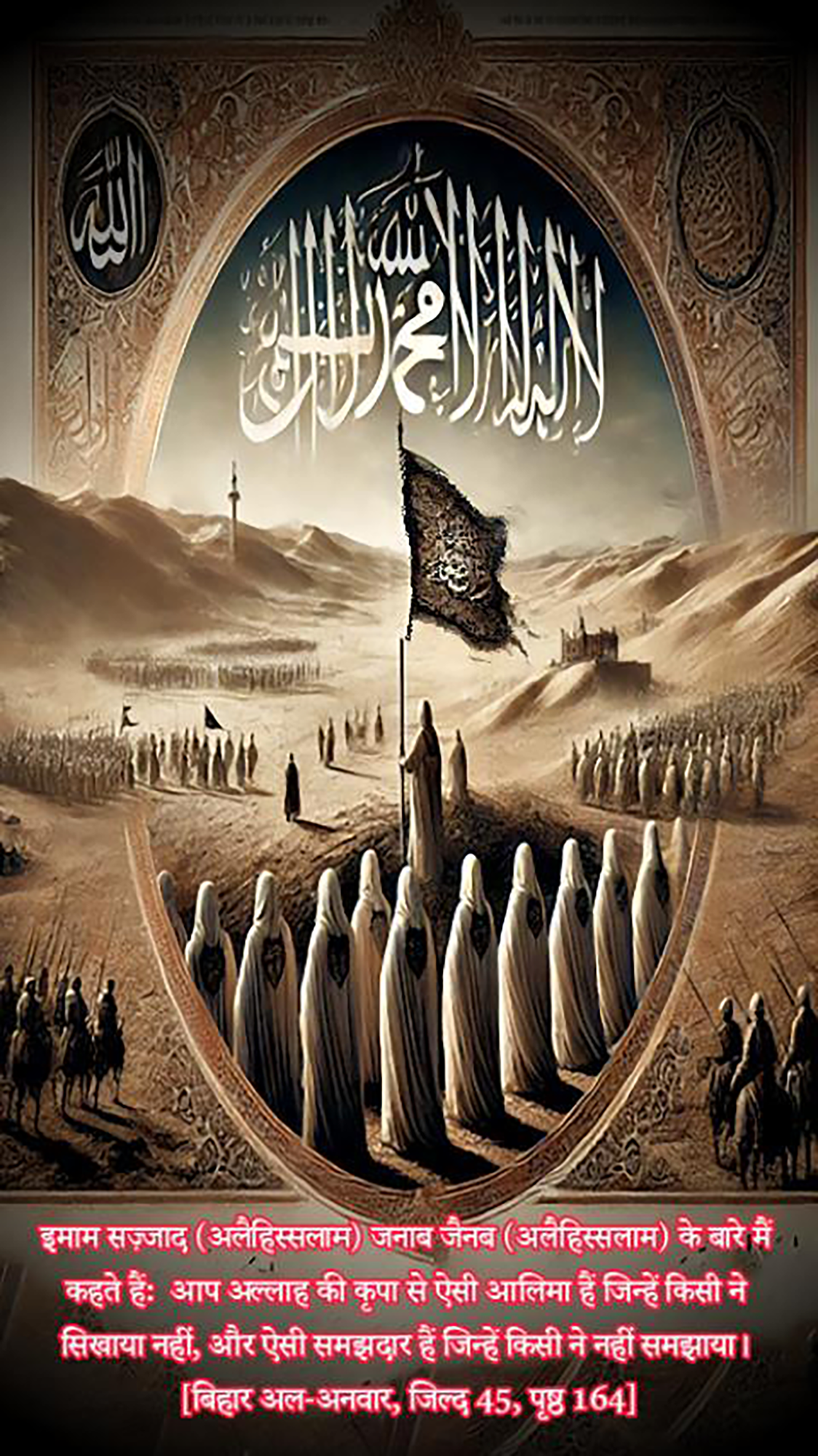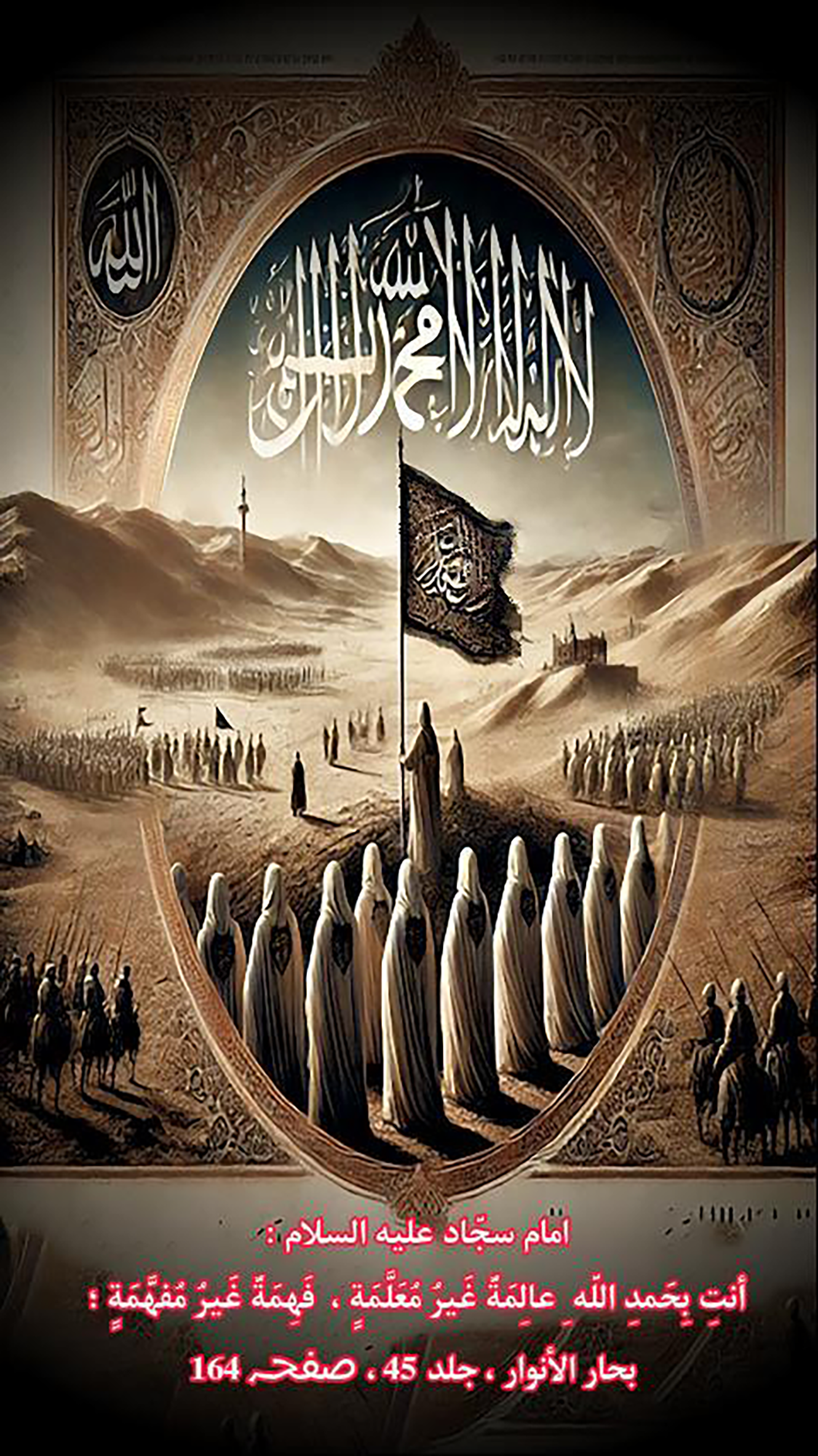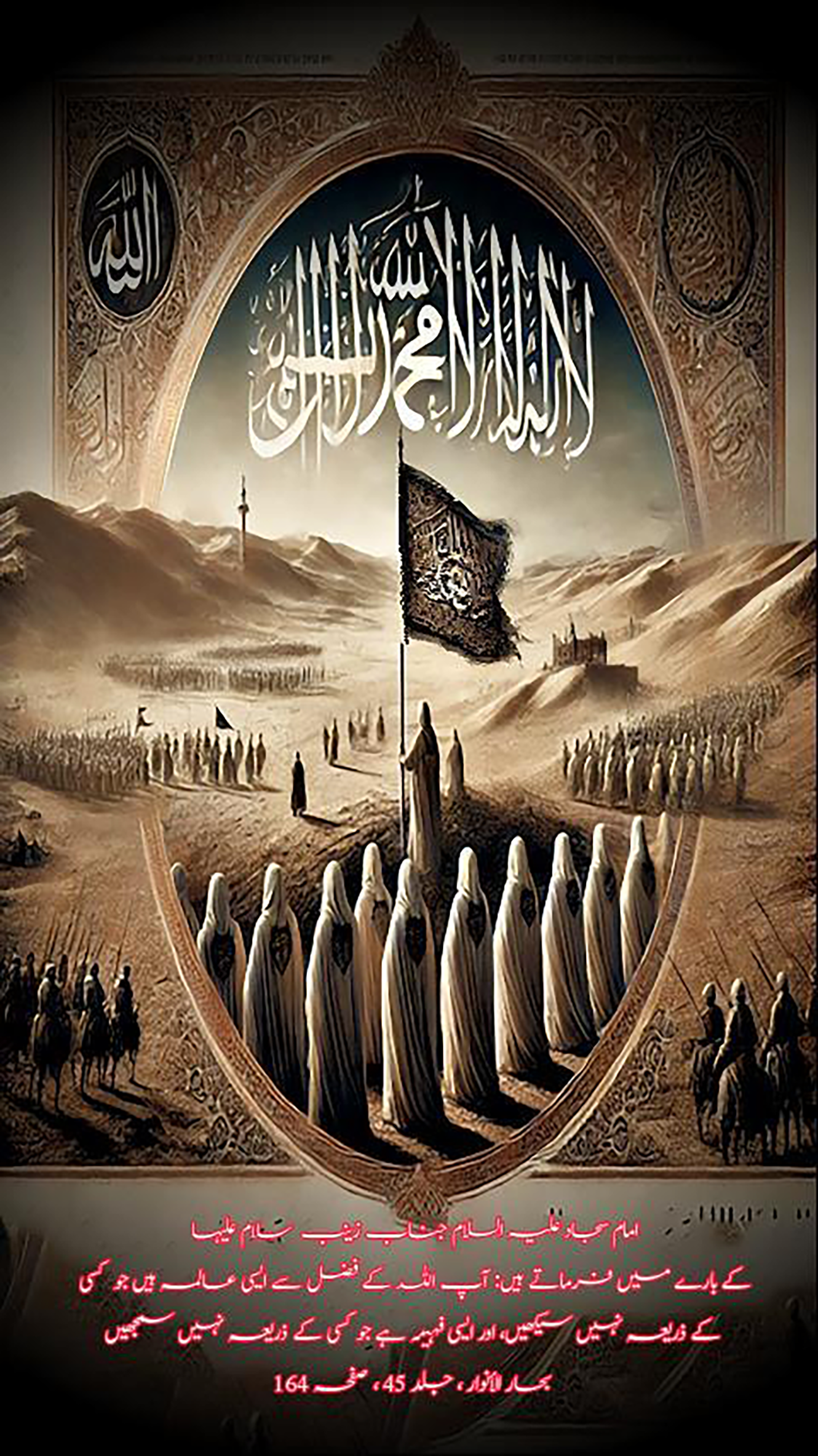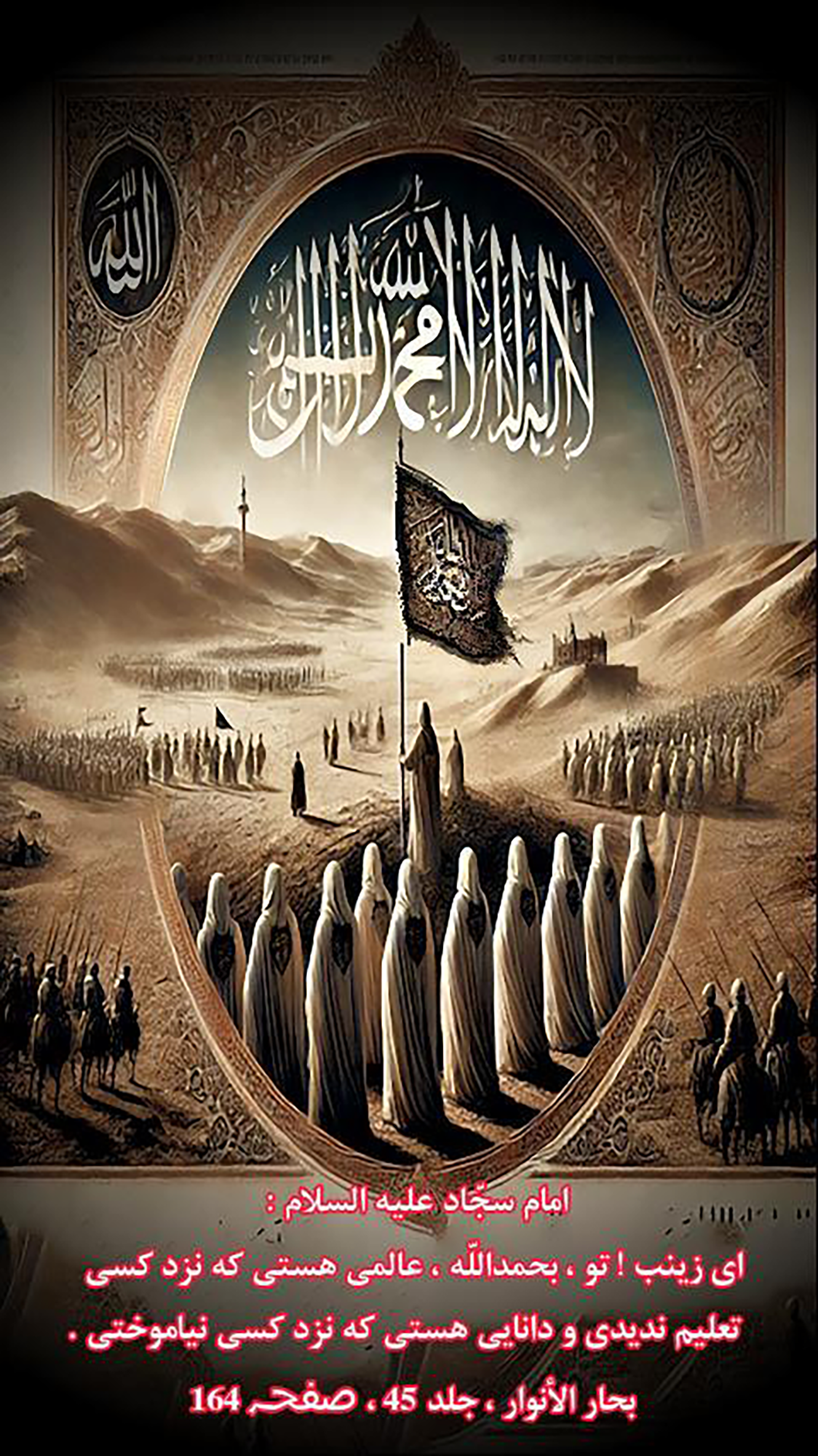 Qur'anic verses and hadiths of Ahl al-Bayt (peace be upon them) and sayings in Arabic, Persian and English.