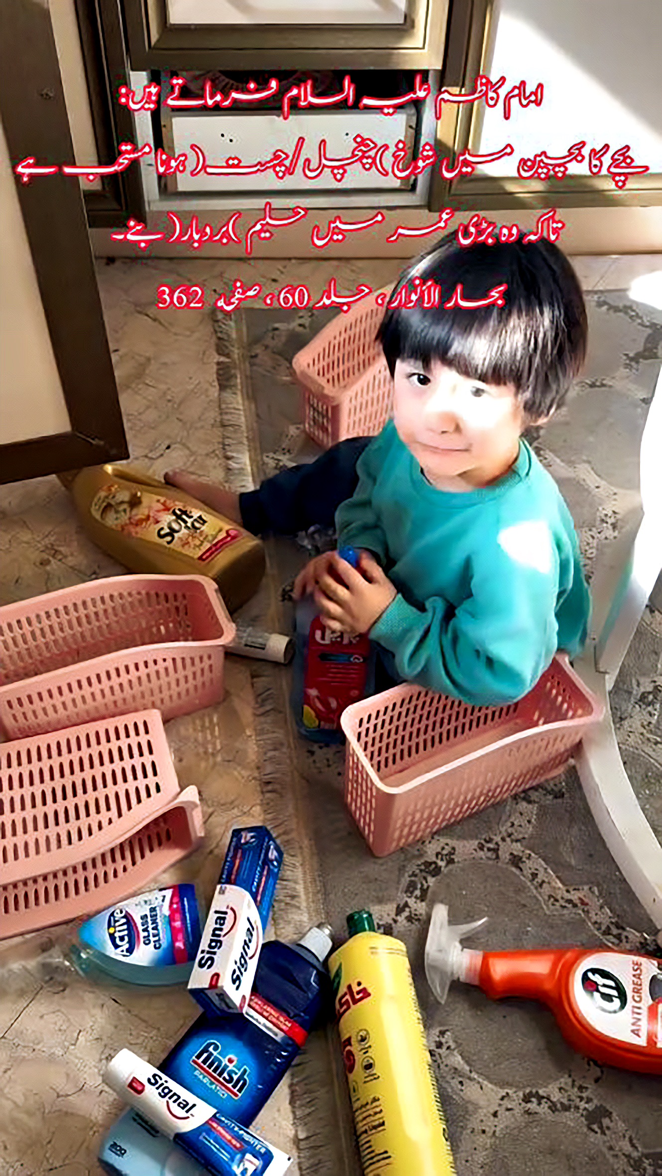 Imam al-Kazim (peace be upon him) said: It is recommended for a boy to be playful in his childhood so that he may be forbearing in his adulthood.