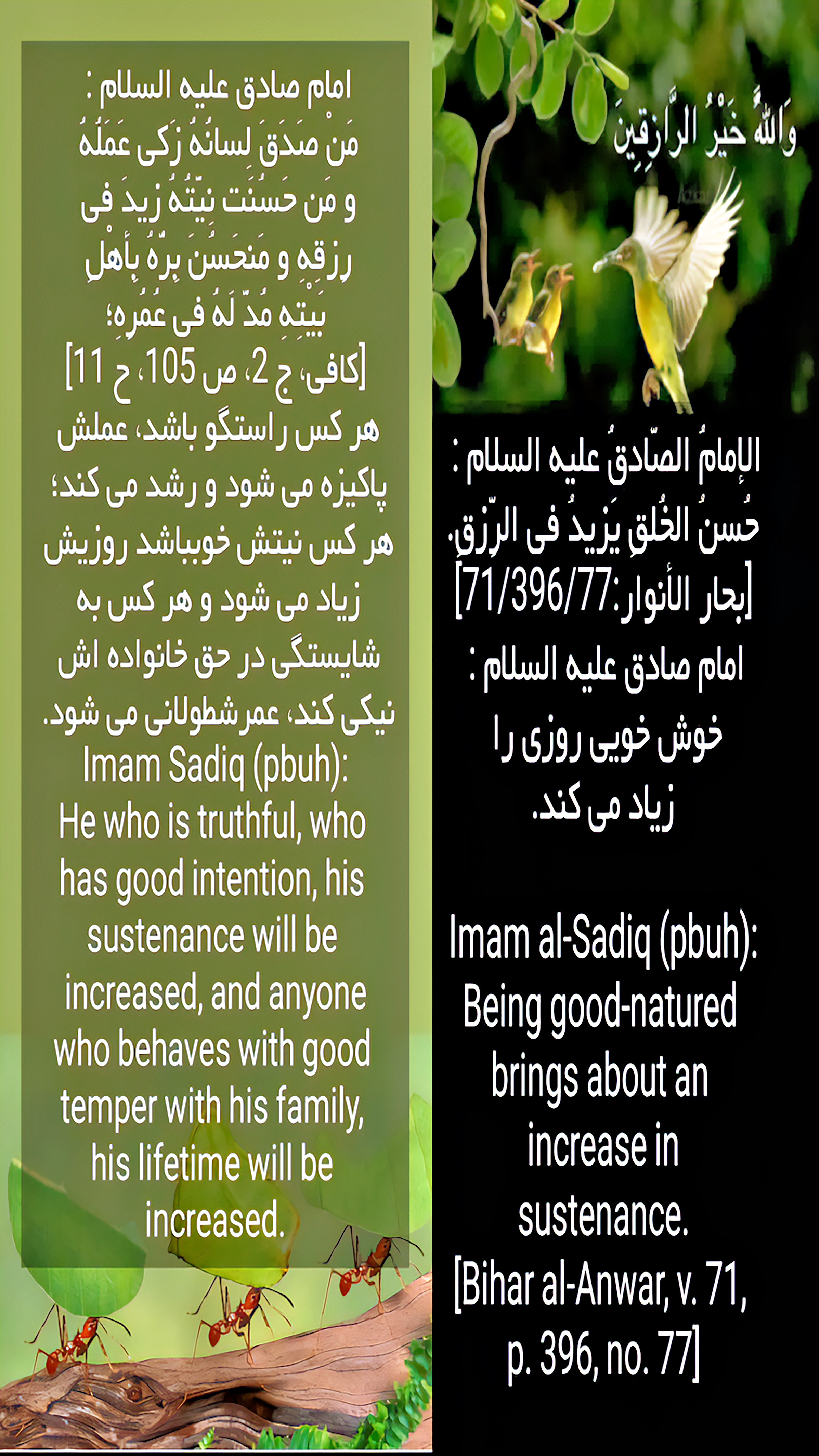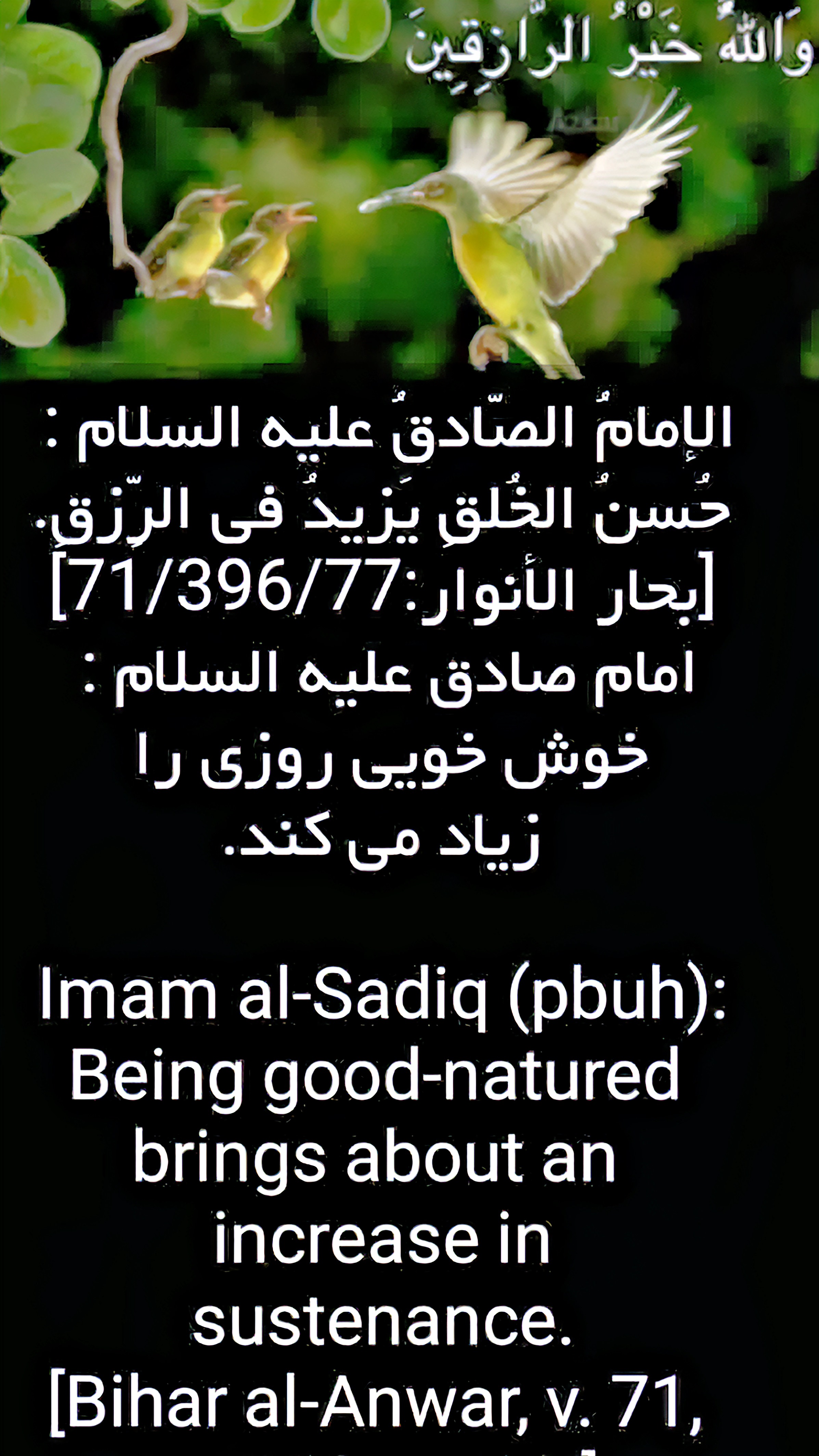Qur'anic verses and hadiths of Ahl al-Bayt (peace be upon them) and sayings in Arabic, Persian and English.