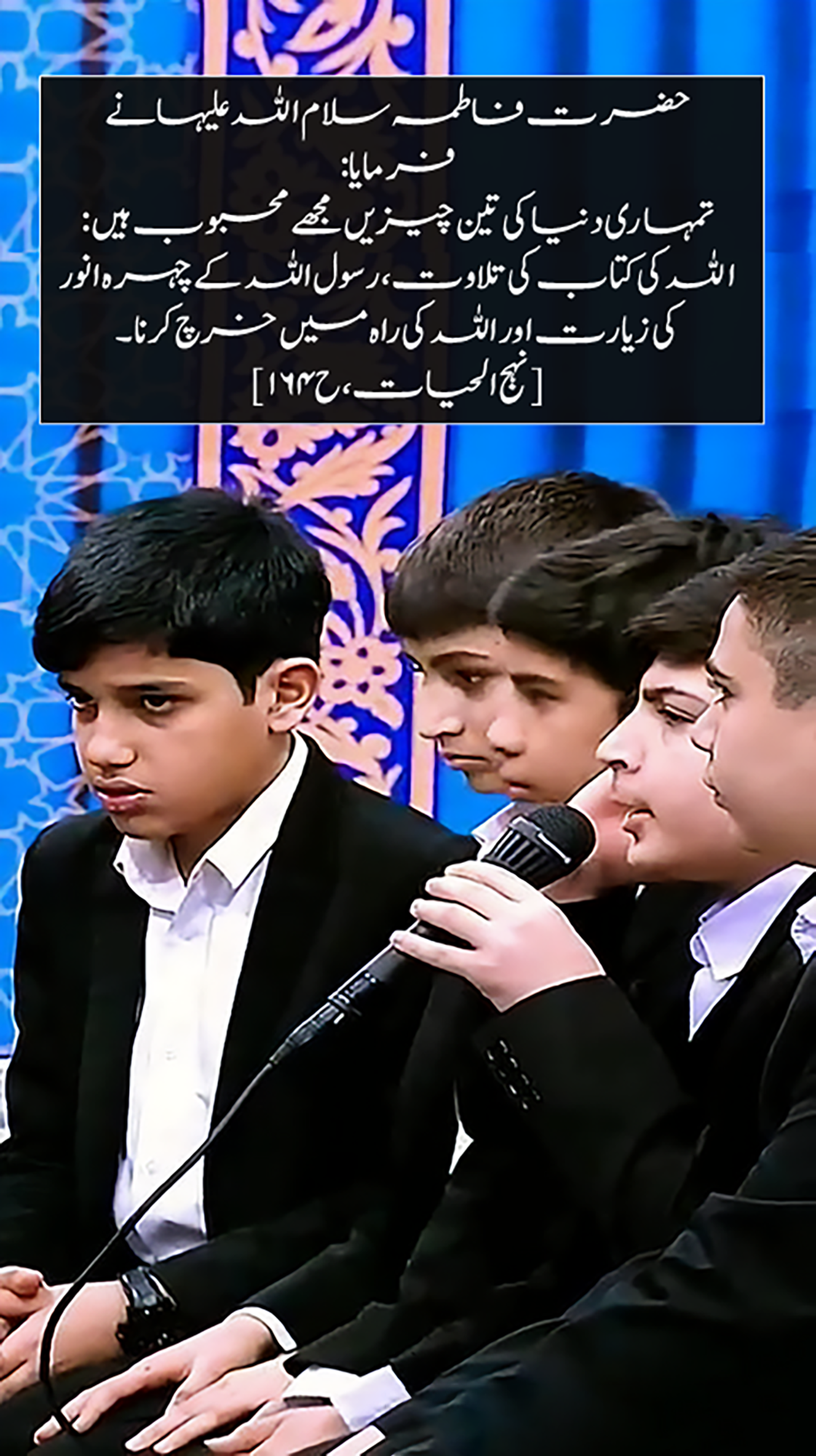 Qur'anic verses and hadiths of Ahl al-Bayt (peace be upon them) and sayings in Arabic, Persian and English.