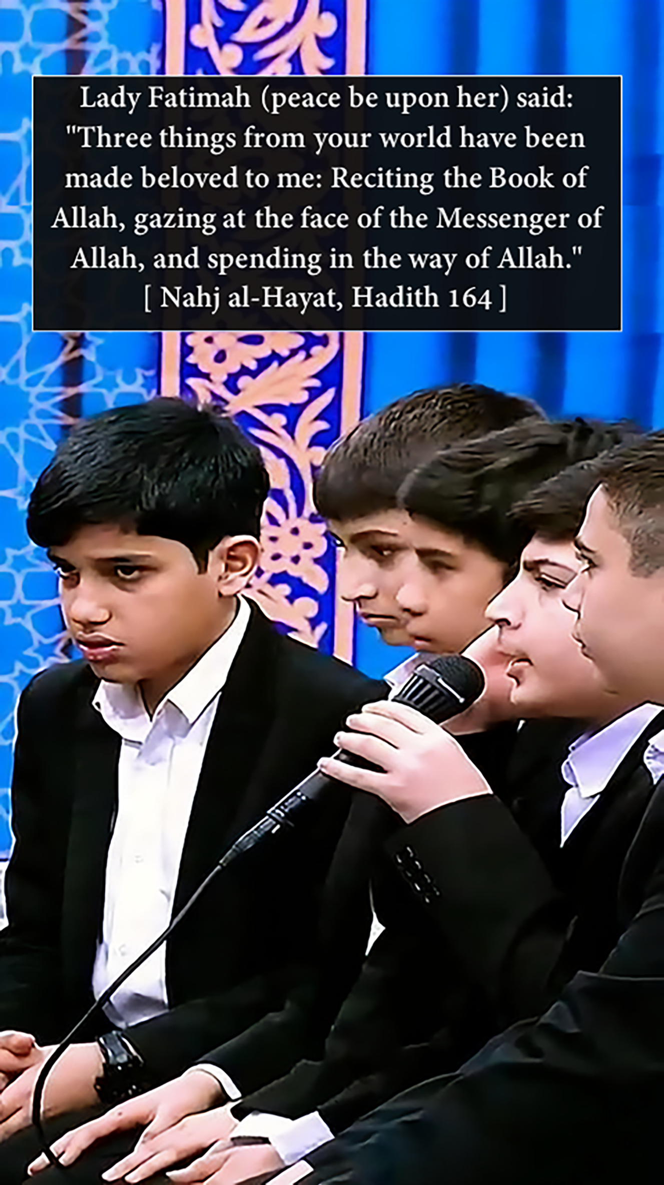 "Three things from your world have been made beloved to me: Reciting the Book of Allah, gazing at the face of the Messenger of Allah, and spending in the way of Allah."