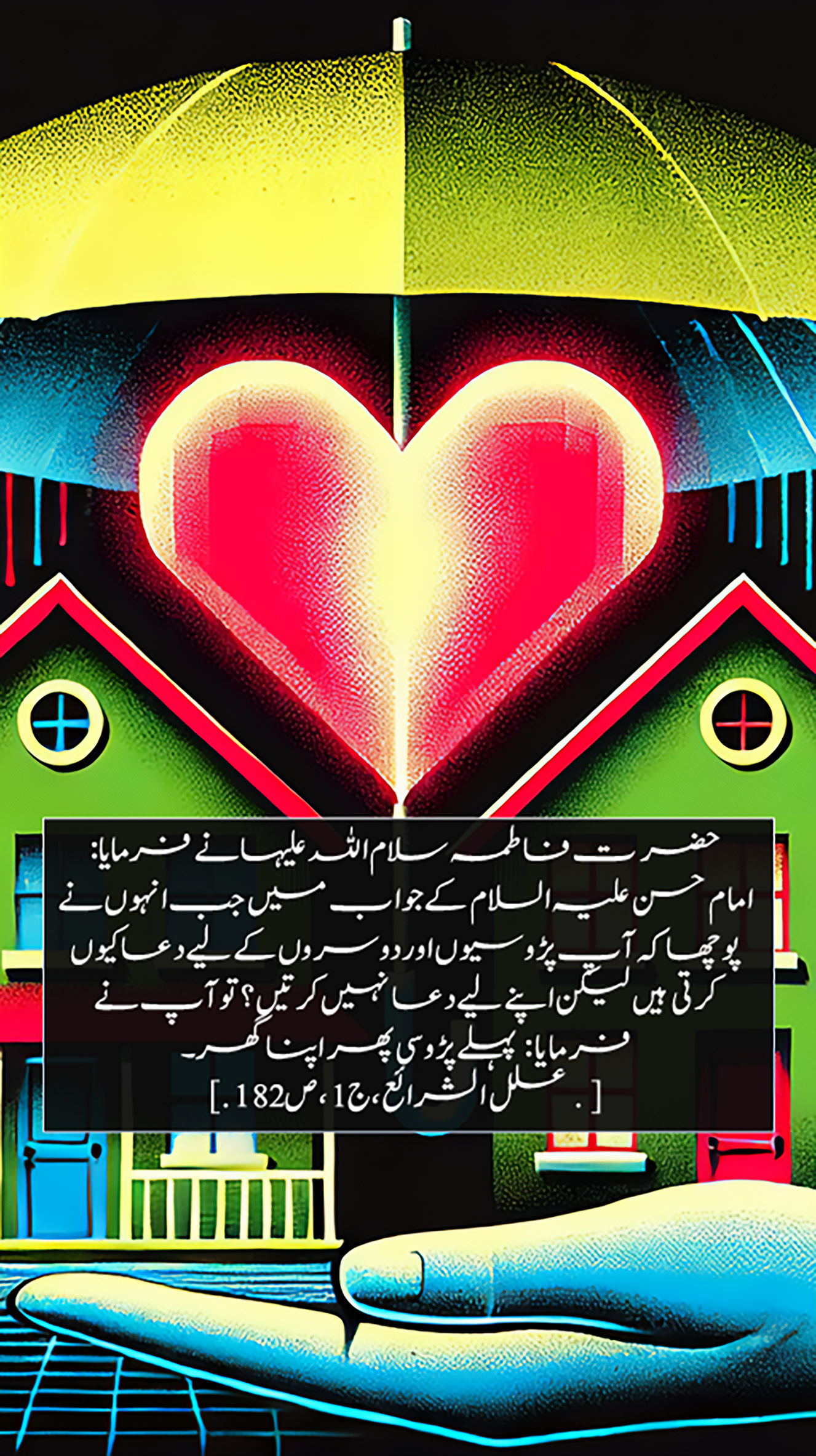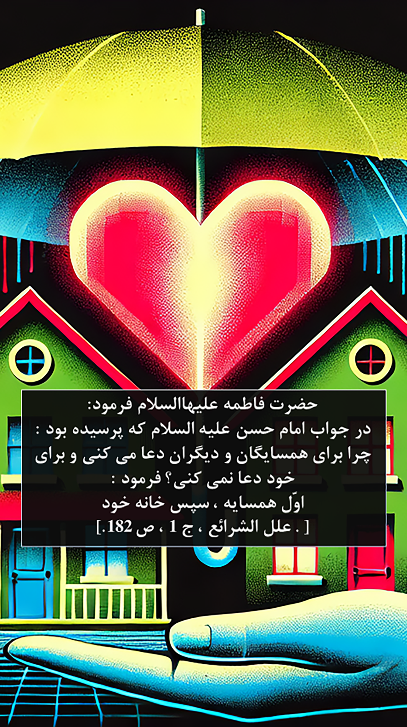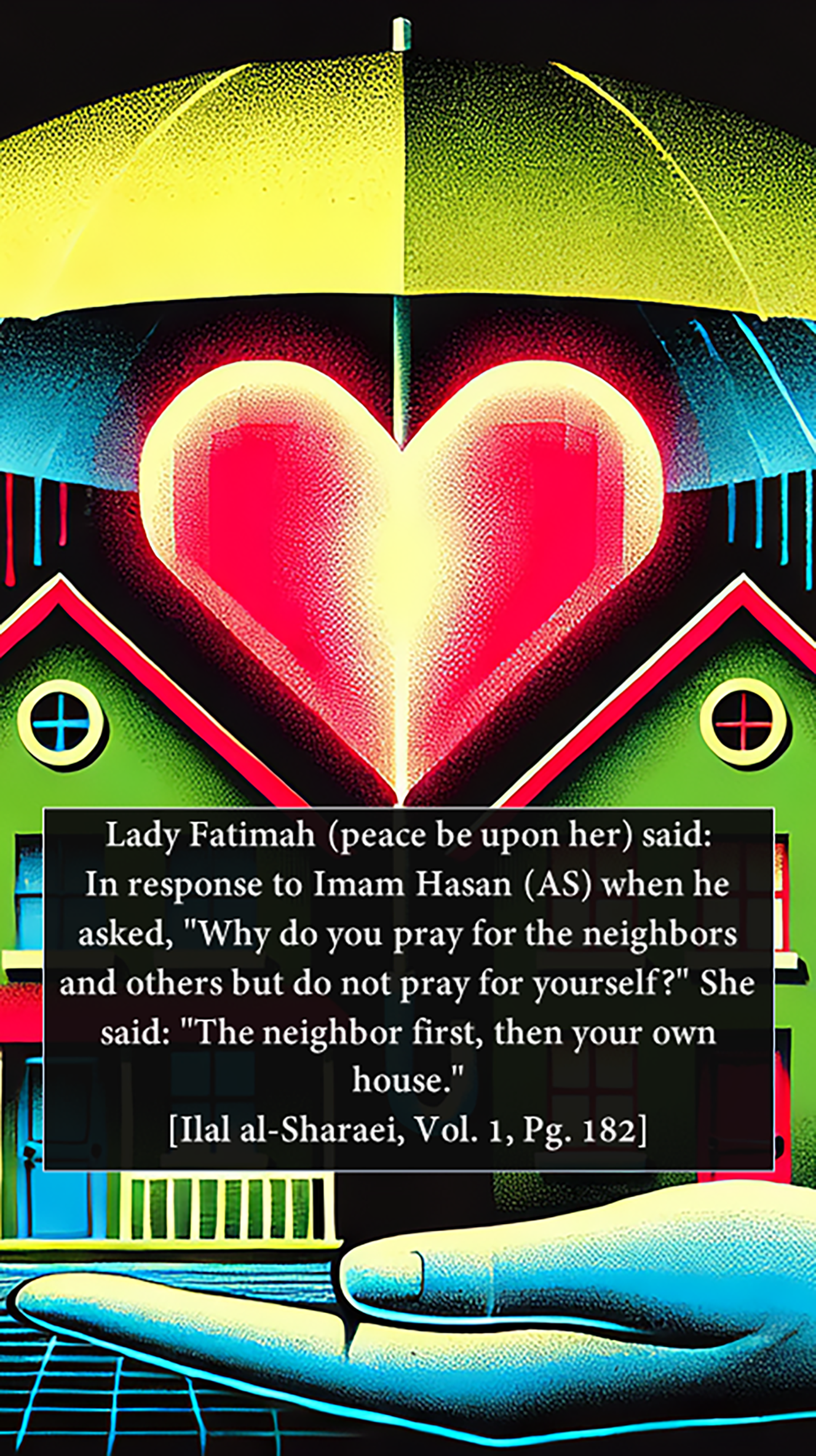In response to Imam Hasan (peace be upon him) when he asked, "Why do you pray for the neighbors and others but do not pray for yourself?" She said: "The neighbor first, then your own house."