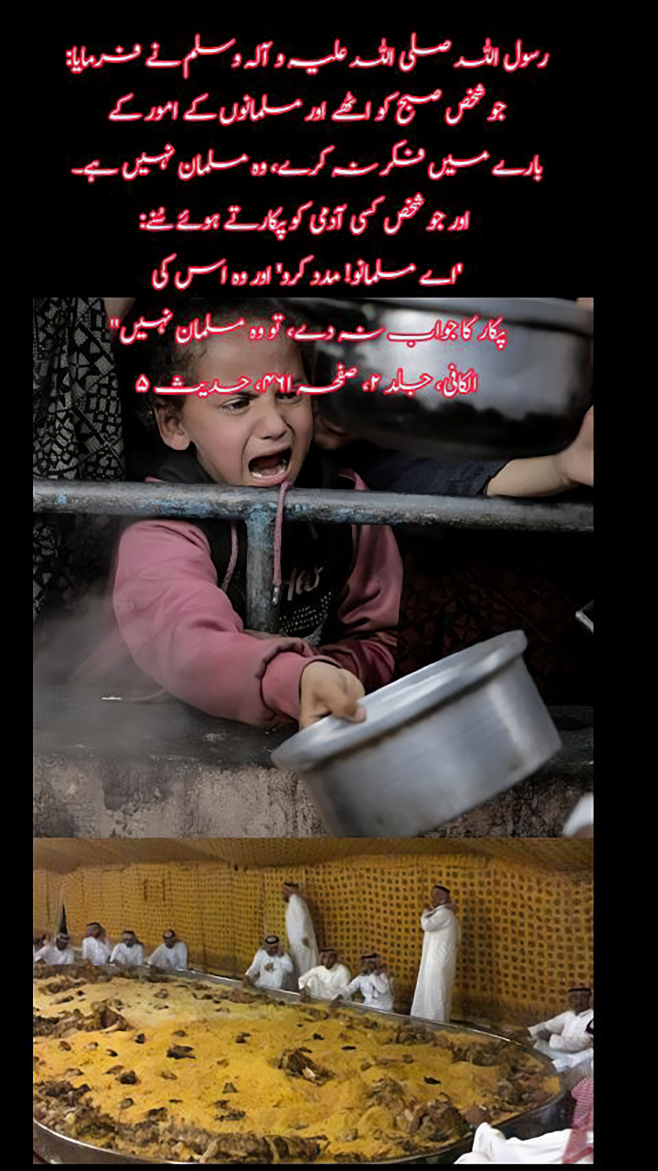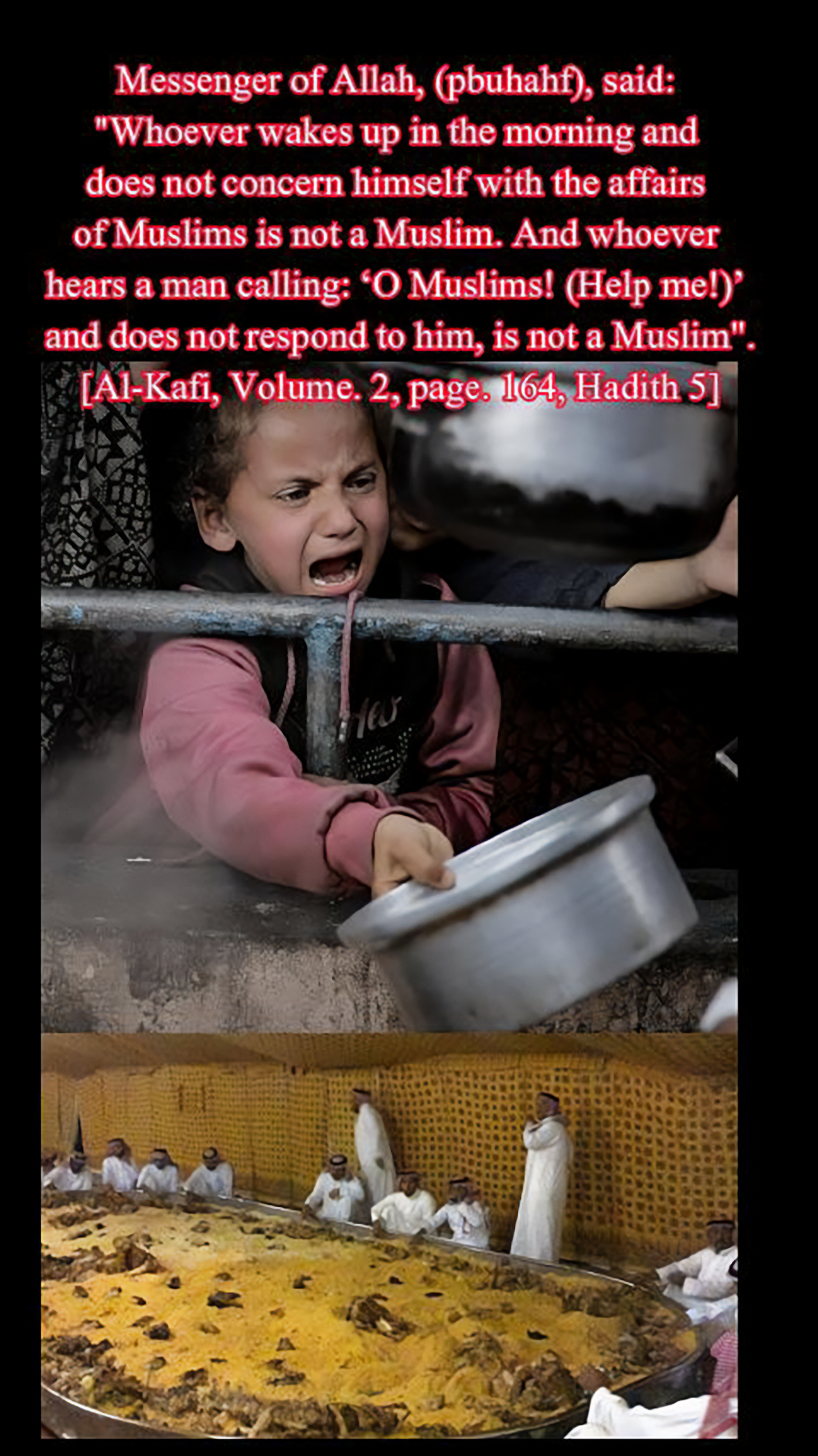 "Whoever wakes up in the morning and does not concern himself with the affairs of Muslims is not a Muslim. And whoever hears a man calling: ‘O Muslims! (Help me!)’ and does not respond to him, is not a Muslim".