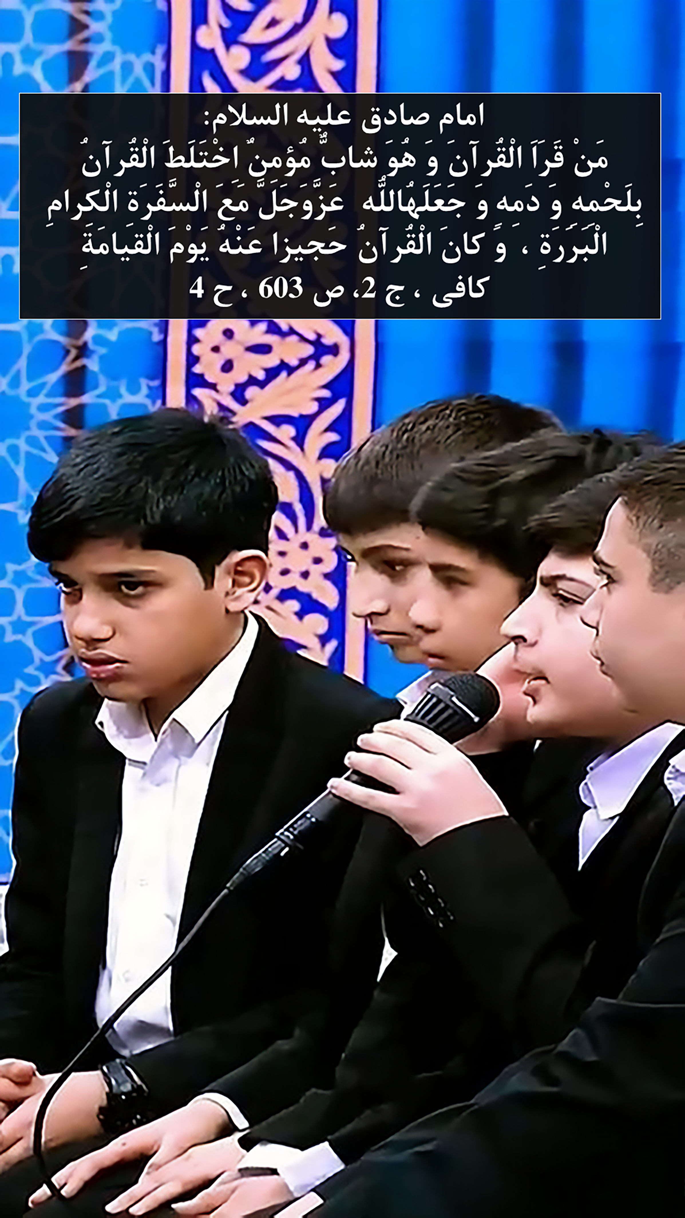 “Whoever recites the Quran while being a young believer, the Quran mingles with his flesh and blood, and Allah (Mighty and Exalted) places him among the noble, righteous scribes (angels). And the Quran will act as a shield for him on the Day of Judgment.”
