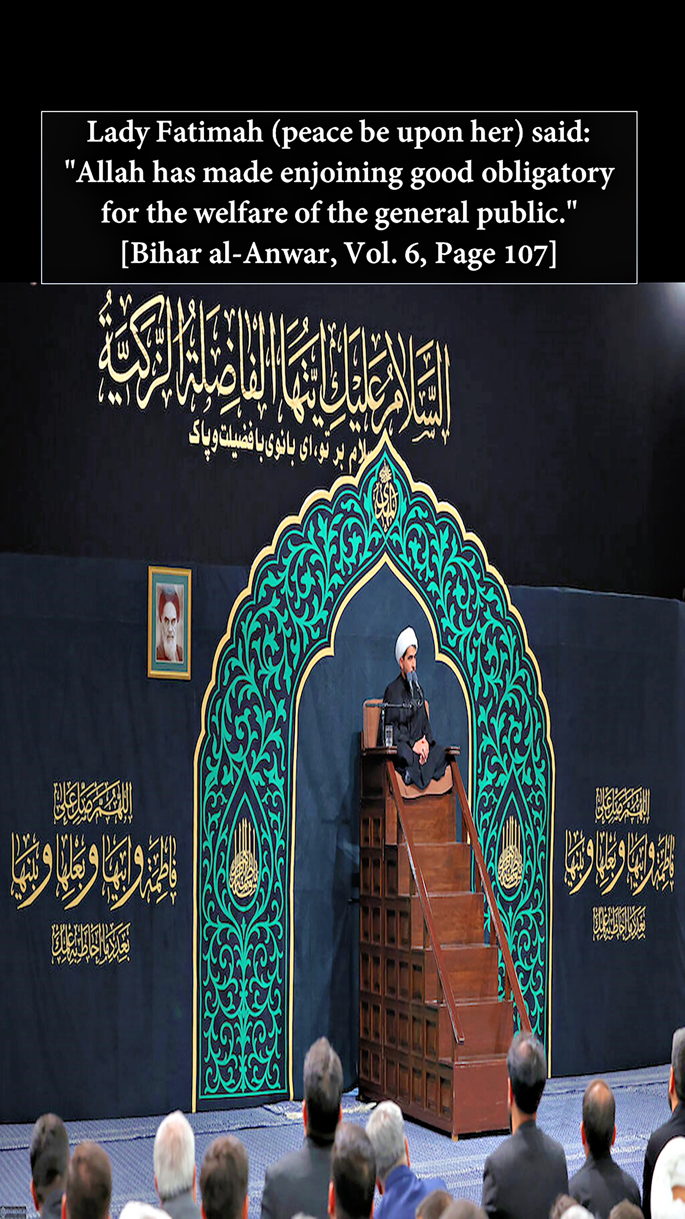 Qur'anic verses and hadiths of Ahl al-Bayt (peace be upon them) and sayings in Arabic, Persian and English.