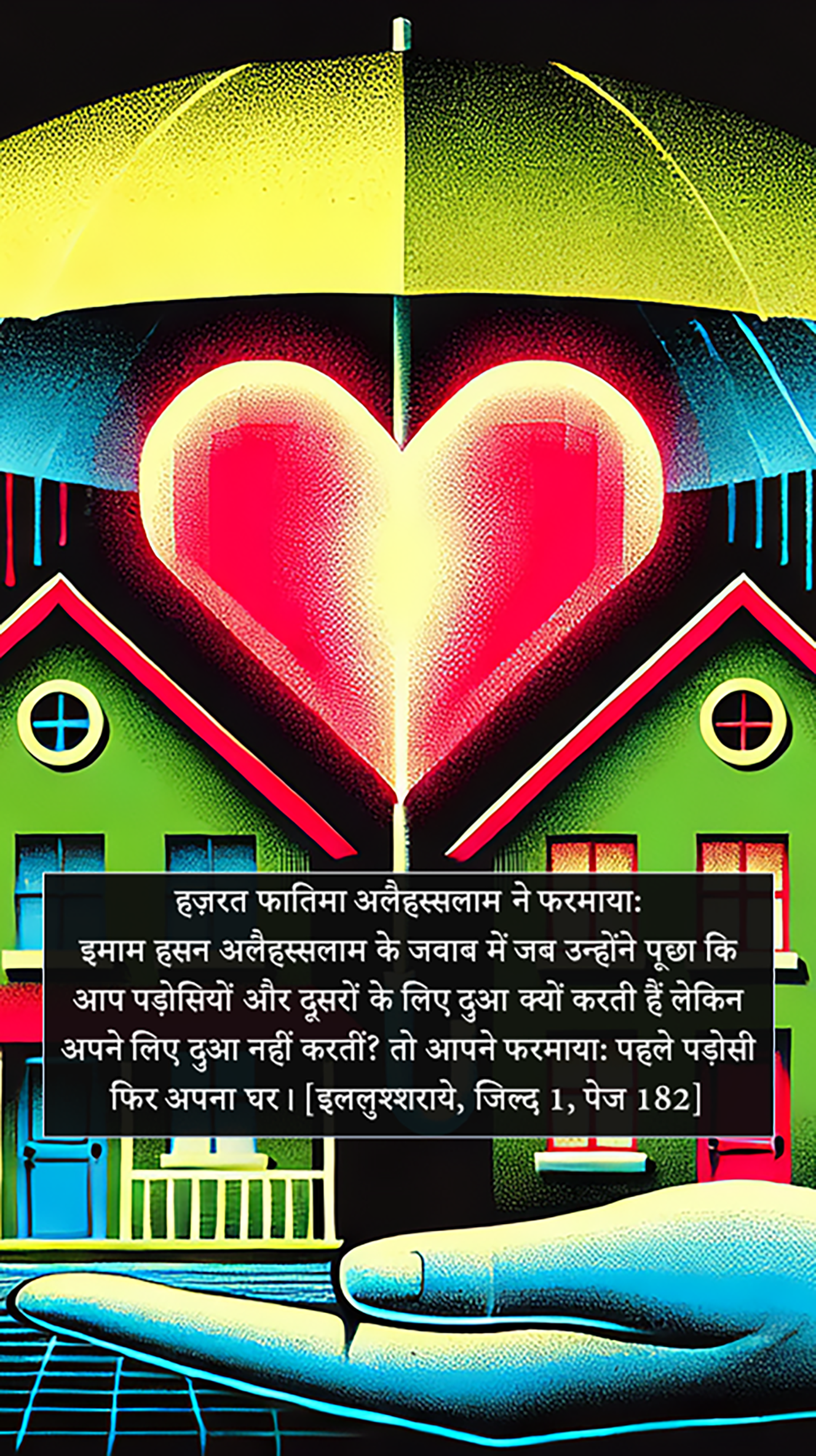 In response to Imam Hasan (peace be upon him) when he asked, "Why do you pray for the neighbors and others but do not pray for yourself?" She said: "The neighbor first, then your own house."