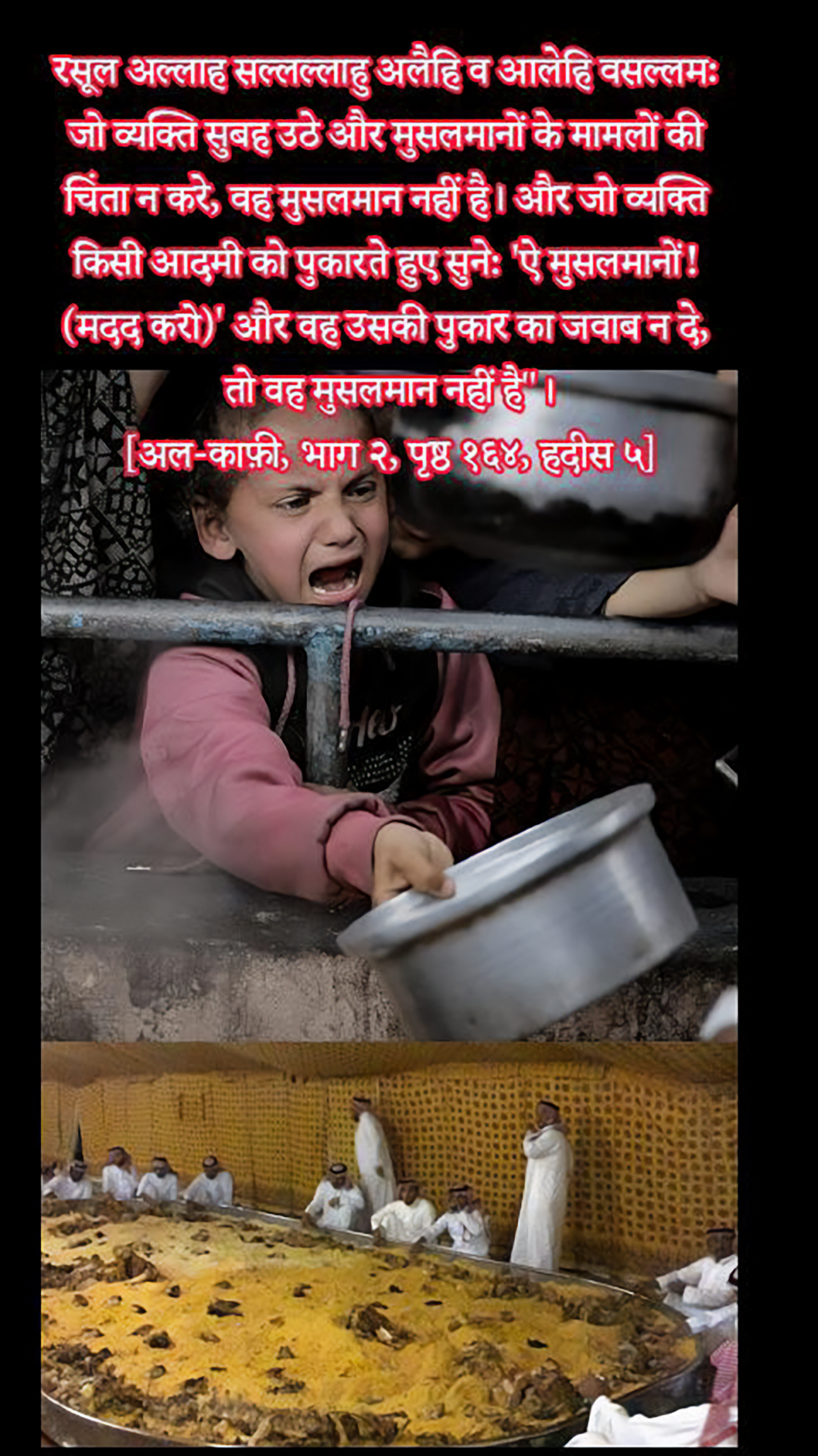 "Whoever wakes up in the morning and does not concern himself with the affairs of Muslims is not a Muslim. And whoever hears a man calling: ‘O Muslims! (Help me!)’ and does not respond to him, is not a Muslim".
