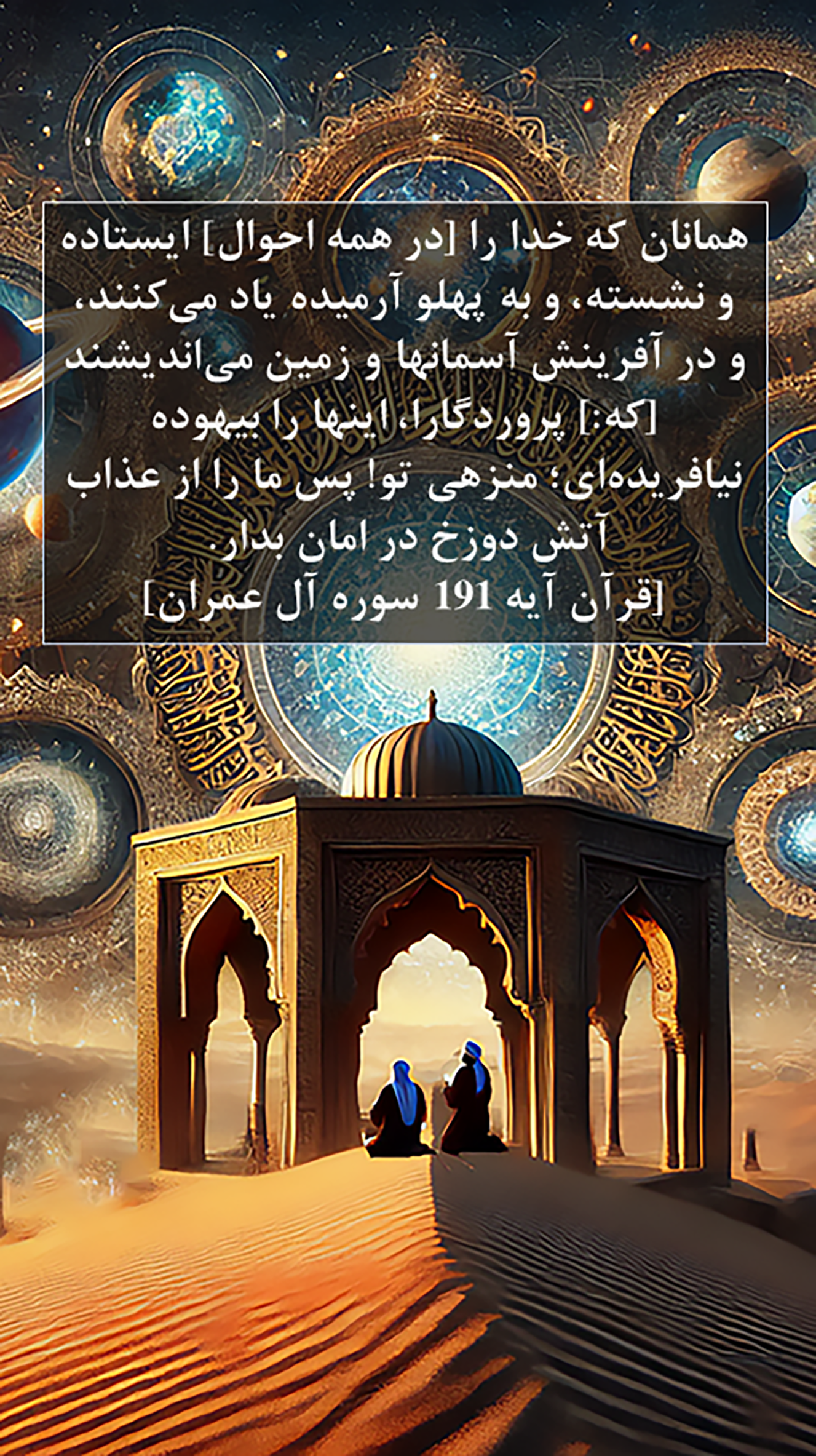 Qur'anic verses and hadiths of Ahl al-Bayt (peace be upon them) and sayings in Arabic, Persian and English.