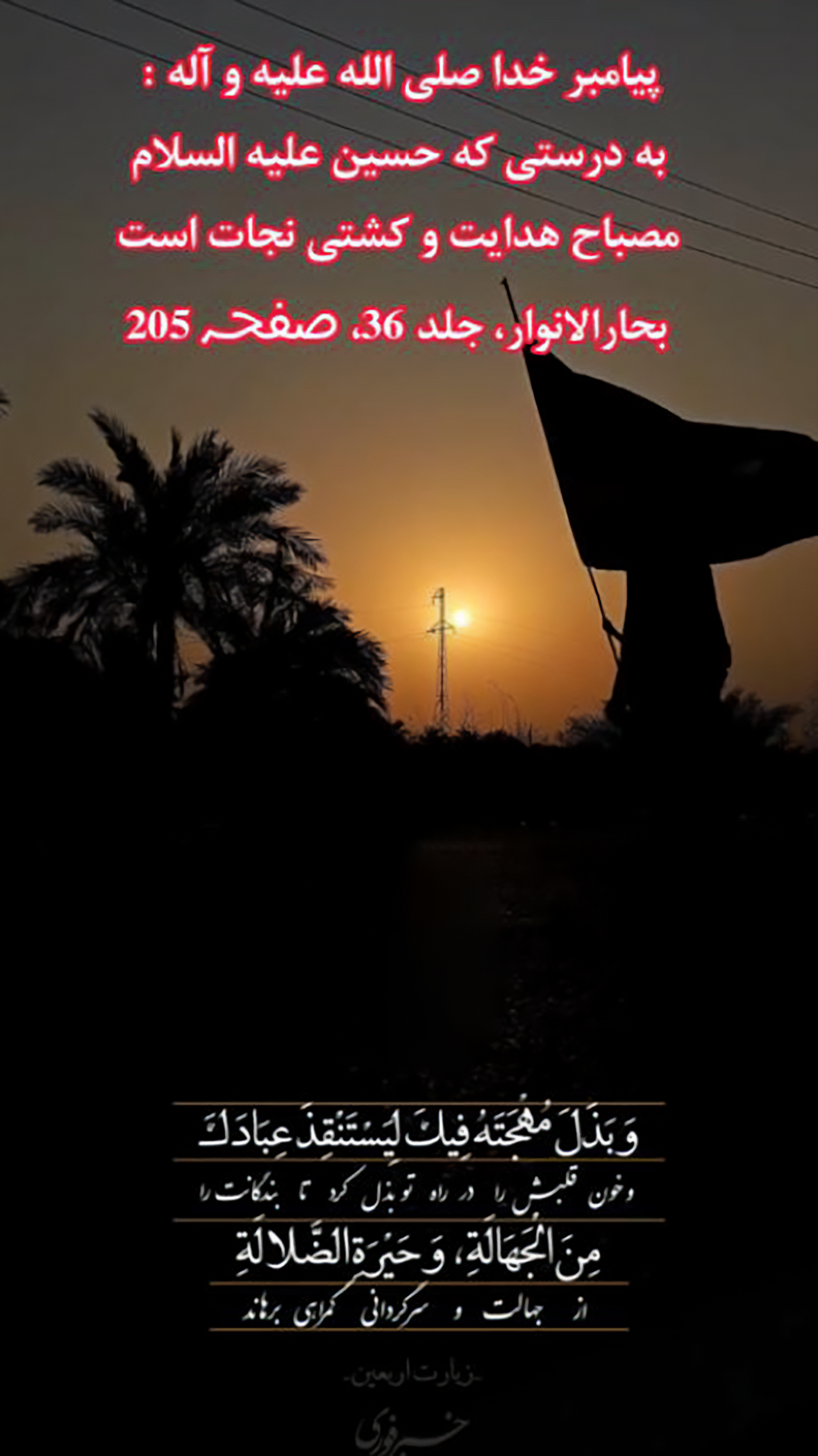 Qur'anic verses and hadiths of Ahl al-Bayt (peace be upon them) and sayings in Arabic, Persian and English.